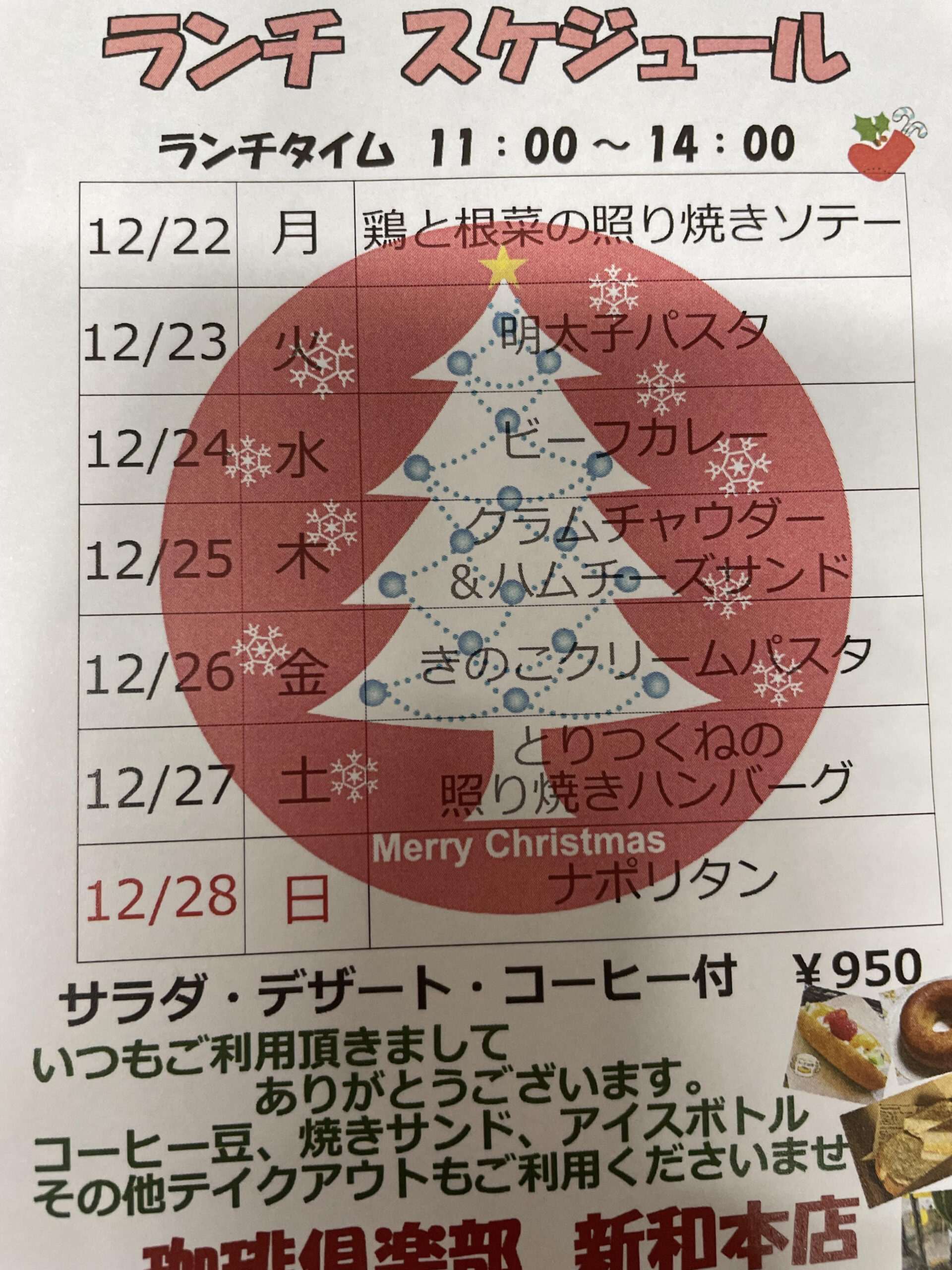 22日から28日のランチスケジュールのお知らせになります。