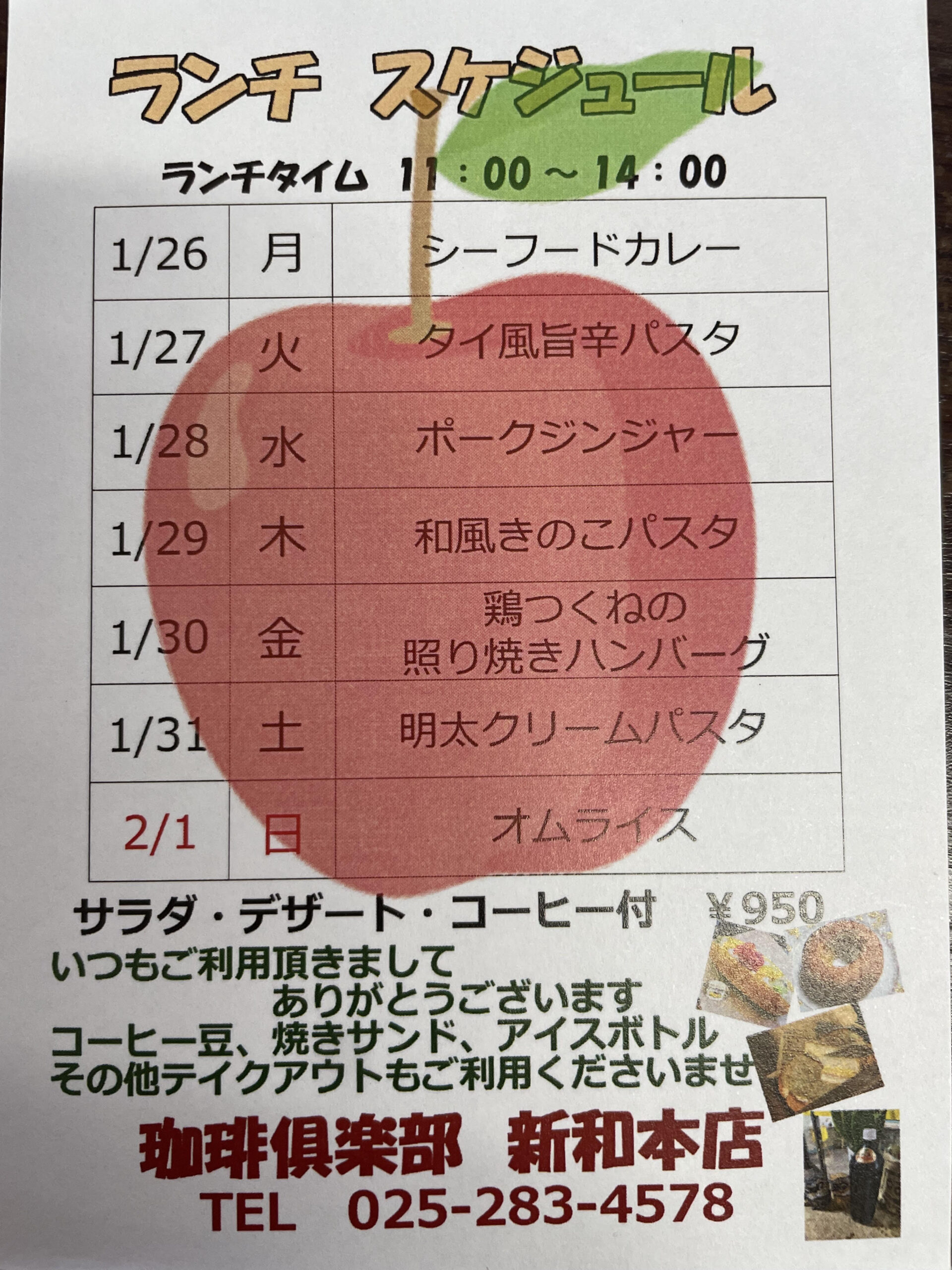 1月26日から2月1日のランチスケジュールのお知らせになります。